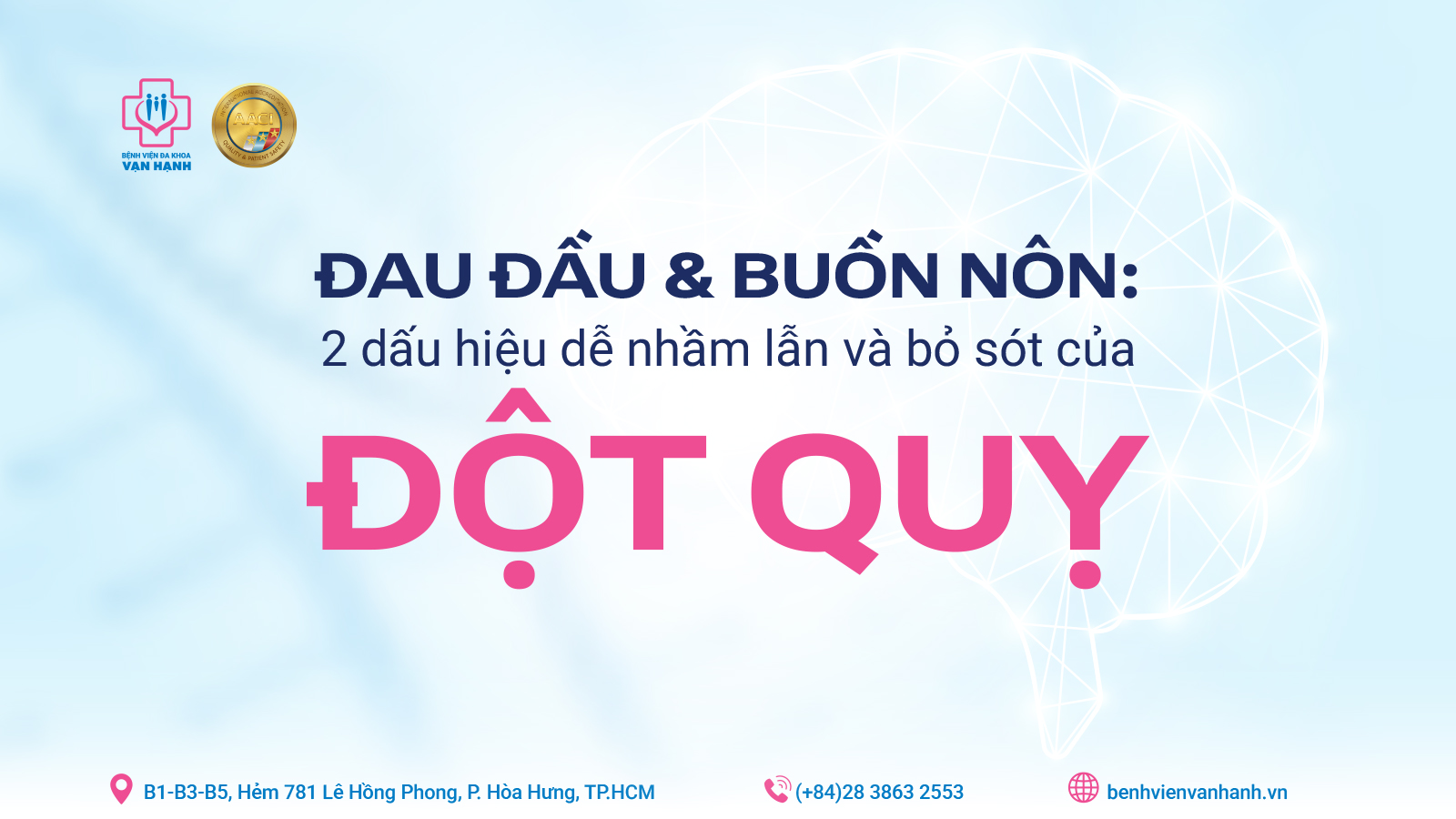 Tại Bệnh viện Đa khoa Vạn Hạnh, quy trình báo động đỏ (Code Stroke) được kích hoạt ngay khi tiếp nhận bệnh nhân nghi ngờ đột quỵ. Với sự hỗ trợ của hệ thống chẩn đoán hình ảnh hiện đại (CT-Scanner, MRI) giúp chẩn đoán chính xác thể bệnh (xuất huyết hay nhồi máu) và đội ngũ bác sĩ chuyên khoa thần kinh giàu kinh nghiệm, chúng tôi cam kết nỗ lực tối đa để bảo vệ sự sống và chức năng thần kinh cho người bệnh.