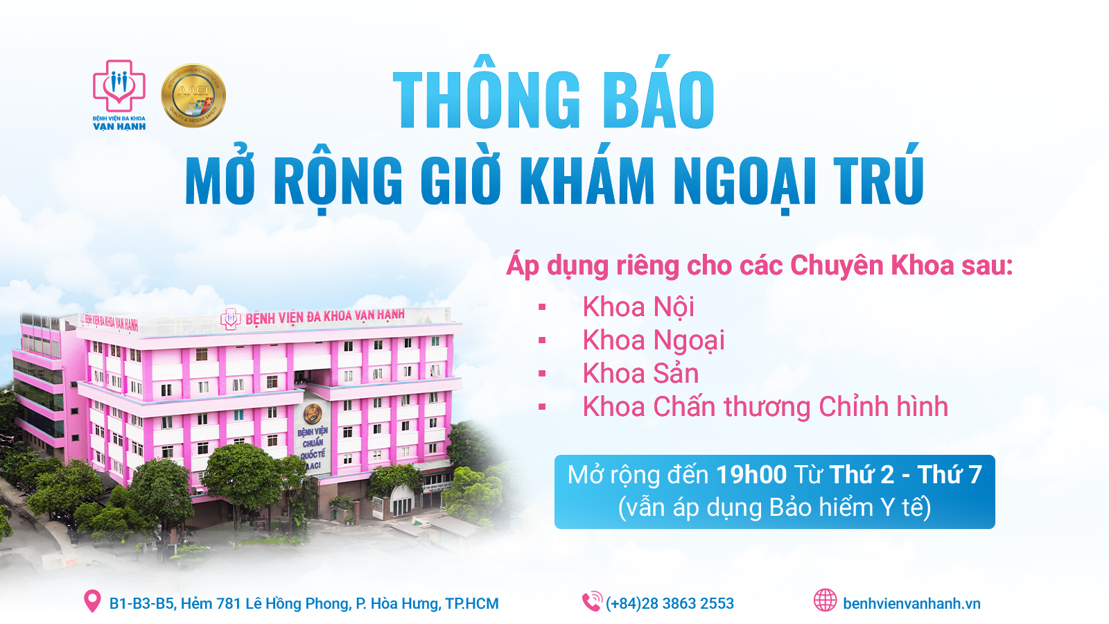 Việc mở rộng thời gian khám đến 19 giờ giúp người bệnh chủ động hơn trong việc sắp xếp công việc và thời gian cá nhân, đồng thời giảm tải lượng bệnh nhân tập trung vào giờ hành chính. Bệnh viện Đa khoa Vạn Hạnh cam kết tiếp tục cải tiến dịch vụ để mang đến trải nghiệm khám chữa bệnh thuận tiện và chất lượng cho Quý khách hàng.