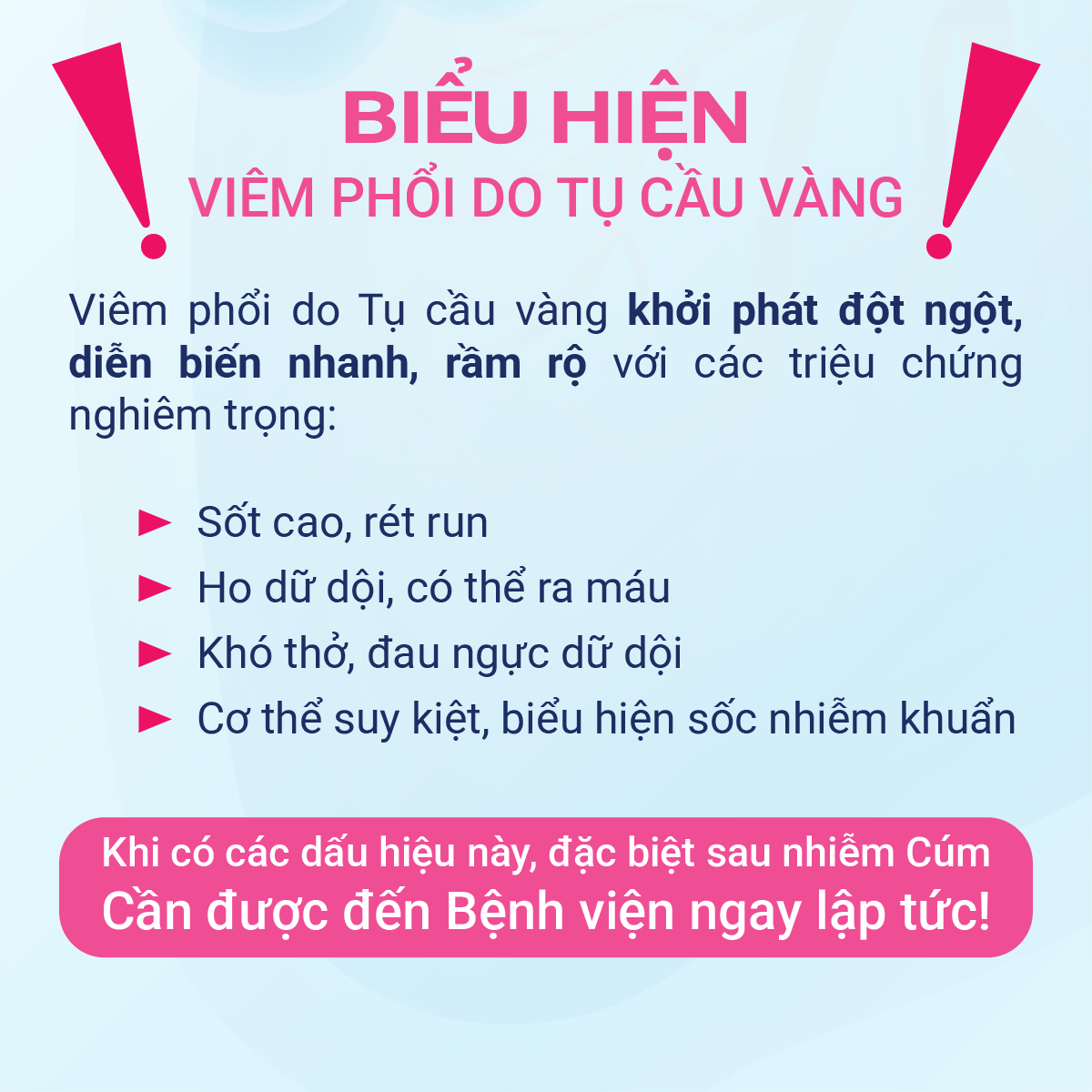 Viêm phổi do Tụ cầu vàng là một cấp cứu y tế. Nếu quý khách hoặc người thân có các triệu chứng nghi ngờ, đặc biệt là sốt cao, khó thở nặng sau khi bị cúm, hãy đến ngay các cơ sở y tế để được chẩn đoán và điều trị kịp thời.