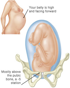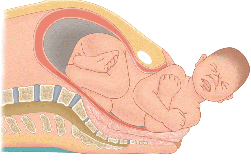 - Mông bé ở dưới khung chậu mẹ, đầu bé phia trên dạ con mẹ